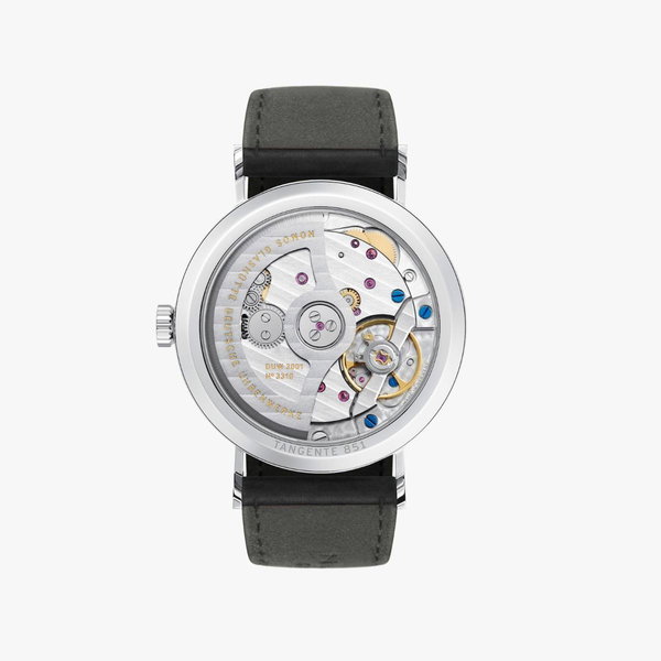 Unverkennbar Tangente und doch ganz neu: automatisch, trotzdem flach, eine Uhr für Menschen, die es modern und gleichzeitig klassisch mögen – mit einem Schuss Avantgarde. Akzente in Cyanblau und der rote Sekundenzeiger bringen das weißversilberte Zifferblatt zum Glänzen. Für Antrieb sorgt das revolutionäre, mit nur 3,2 Millimetern ultraflache Manufakturkaliber DUW 3001.