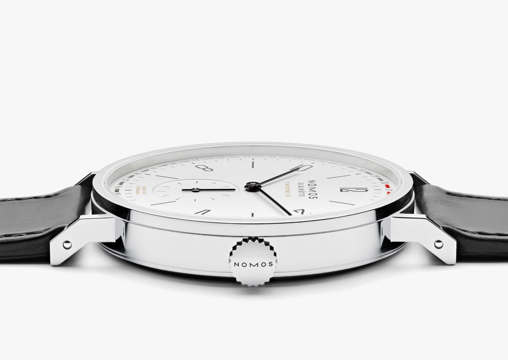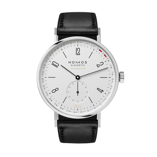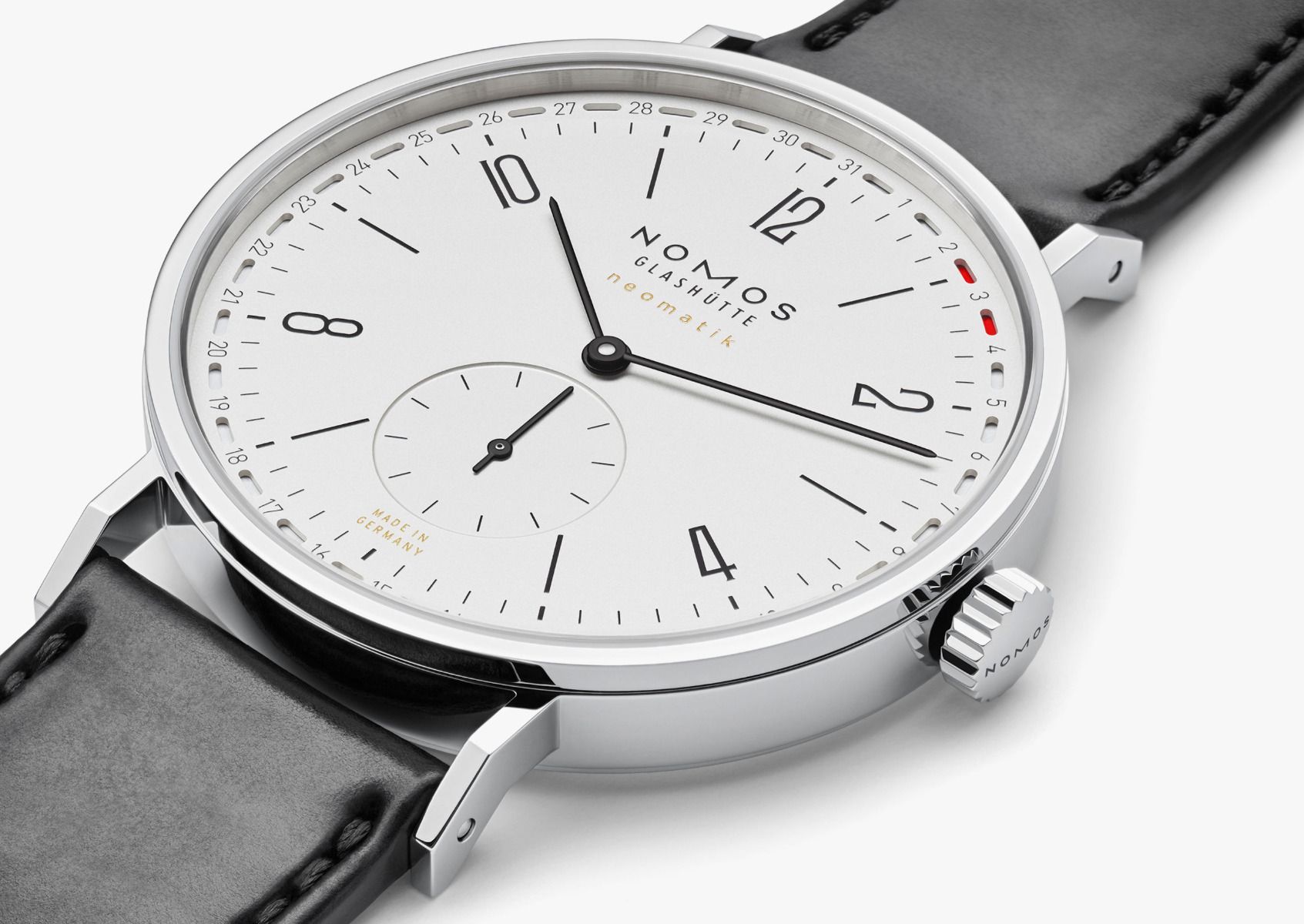 Tangente, die NOMOS-Ikone, feiert ihr Datums-Update rundherum – und interpretiert das Thema so auf völlig neue Art: Der weit außen liegende Datumsring trägt hier zwei rote Punkte, die das jeweilige Datum rahmen; umlaufend auf dem Zifferblatt. Eine Optik, die dem neuen neomatik-Kaliber Rechnung trägt. Einzigartig – und unverkennbar NOMOS Glashütte.
