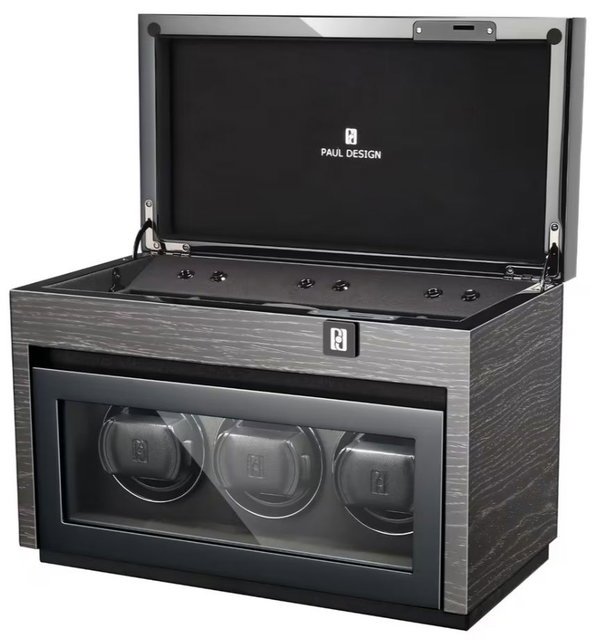 Dieser Bestseller bietet Bewegung für 3 Uhren und weitere 5 Uhren zur Aufbewahrung im abschließbaren Deckel. Das wunderbar handgefertigte Holzgehäuse des Uhrenbewegers ist mit einem 5-schichtigen Hochglanzlack veredelt und ist somit ein glanzvoller Hingucker. Die einfache Bedienung über Push-Button und die flüsterleisen Motoren überzeugen.