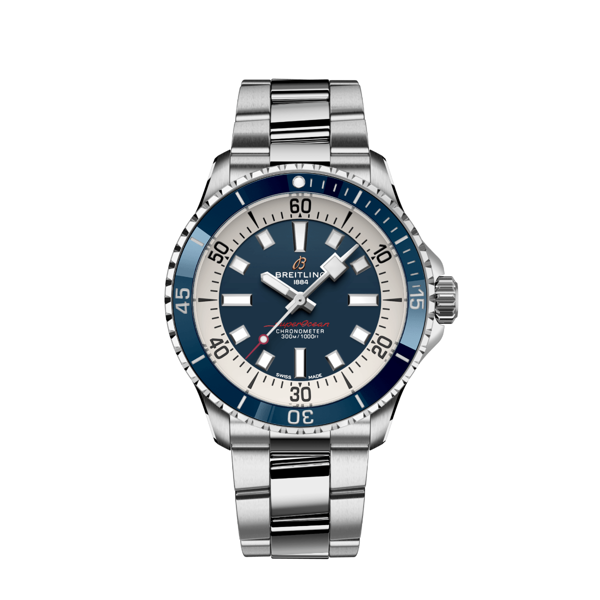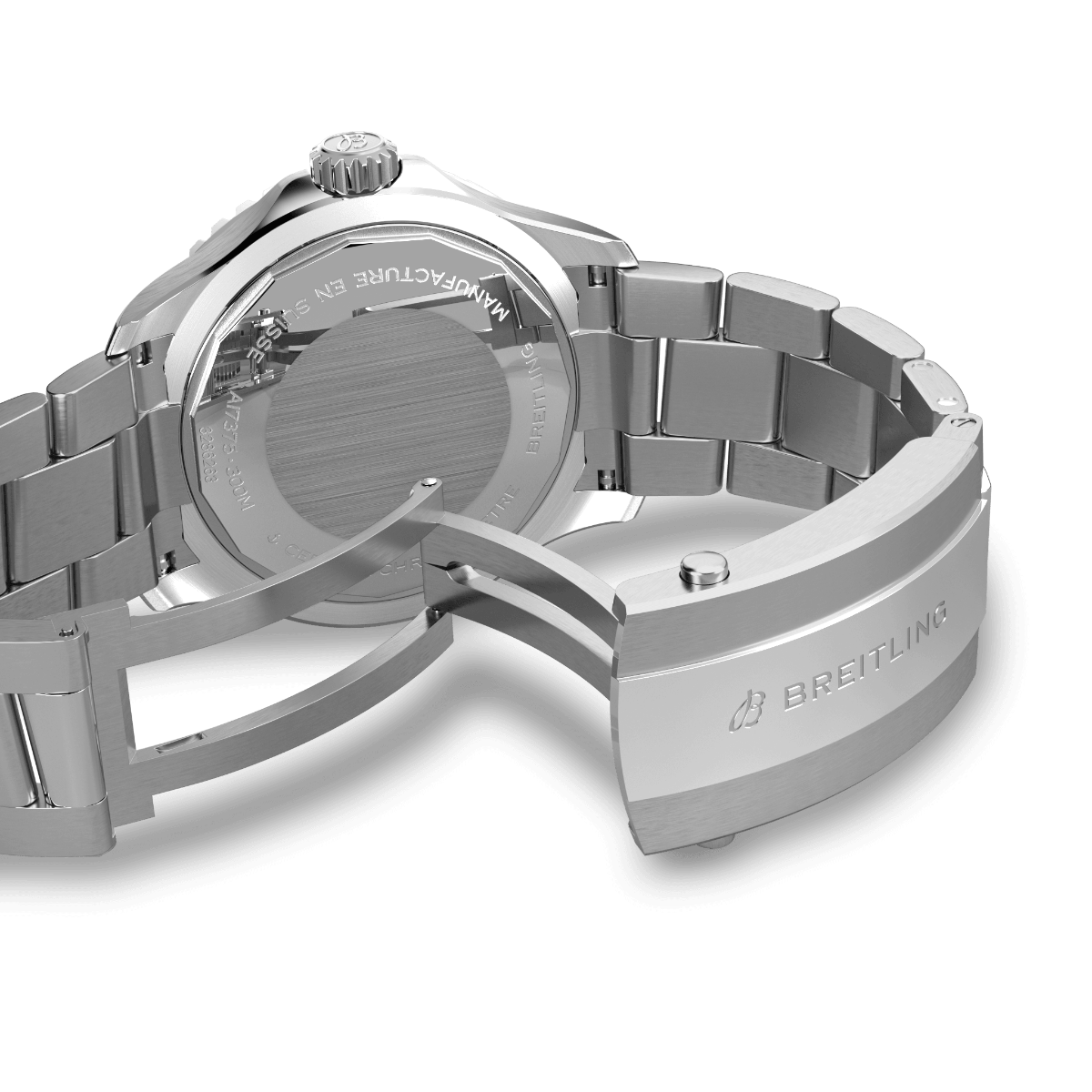 Leistung und Stil für alle Ihre Wassersport-Aktivitäten. In den 1960er-Jahren kam der neuartige Tauchsport gross in Mode. Für Taucher war Timing alles, und Breitling machte sich daran, eine möglichst schnörkellose Taucheruhr für sie zu entwickeln, bei der auf jede Funktion verzichtet wurde, die nicht auf ihre lebensrettenden Ansprüche unter Wasser abgestimmt war. Diese reduzierte Uhr erhielt den Namen Slow Motion. Was blieb, waren klare Linien, massive Leuchtzeiger, eckige Indizes und ein kontrastreicher Zifferblattring, um maximale Ablesbarkeit zu garantieren. Praktisch war sie in jedem Fall. Aber was die Leute wirklich begeisterte, war ihr Look. Die neue Superocean nimmt die gefeierten Designelemente der Slow Motion wieder auf und ergänzt sie mit modernen Funktionen wie einer Keramikinlay-Lünette und Zifferblättern in leuchtenden Farben. Breite Zeiger und Indizes in lumineszierendem Super-LumiNova® sorgen für eine einfache Ablesbarkeit unter Wasser. Die Uhr ist wasserdicht bis 300 Meter (1000 Fuss), stossfest sowie sand- und salzwasserbeständig. Bei der Version in Bronze kommt eine spezielle Legierung zum Einsatz, die eine exzellente Korrosionsbeständigkeit aufweist, aber mit der Zeit eine dezente Patina entwickelt, durch die die Uhr noch einzigartiger wird. Die beiden Armband-Optionen (Gummi- oder Metallarmband) verfügen über eine Faltschliesse, mit der kleinste Anpassungen bis zu 15 mm möglich sind, so dass die Uhr ganz einfach über Rashguards und Neoprenanzügen getragen werden kann. Die kratzfeste Keramikinlay-Lünette wird niemals abnutzen oder verblassen. Zur Sicherheit ist die Lünette bei den meisten Grössen einseitig drehbar und bei 46 mm beidseitig drehbar mit patentierter Verriegelung. Das Allerbeste: Dies ist nicht länger eine reine Taucheruhr – surfen Sie mit ihr, schwimmen Sie mit ihr, besuchen Sie die Strandbar mit ihr und tragen Sie sie dann zum Dinner. Die Superocean ist die perfekte Balance zwischen nostalgischem Vermächtnis und einem frischen, neuen Look.