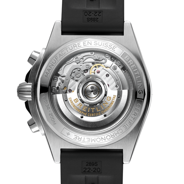 Breitlings Uhr für jede Situation und Aktivität. Die Chronomat nimmt einen wichtigen Platz in Breitlings Geschichte ein. Die Markteinführung erfolgte 1984, zu einer Zeit, in der extraflache Quarzuhren an der Tagesordnung waren. Breitling setzte dabei mutig auf eine eindrucksvoll proportionierte mechanische Uhr. Die Chronomat beruht auf dem Chronographen Frecce Tricolori, der in Zusammenarbeit mit der berühmten italienischen Flugstaffel entwickelt und 1983 auf dem Markt eingeführt wurde. Das Modell feiert stilvoll das hundertjährige Bestehen von Breitling und bedeutete die Rückkehr des mechanischen Chronographen zu seiner rechtmässigen herausragenden Stellung innerhalb der Marke, die ihren weltweiten Ruf auf diesen unglaublichen Uhren aufbaute. Die Chronomat ist in einer Reihe unterschiedlicher Materialien erhältlich und verfügt über ein 42-mm-Gehäuse sowie die legendäre Lünette mit den vier Reitern. In dieser Version wurde ein Edelstahlgehäuse mit einer Platinlünette und einem eisblauen Zifferblatt kombiniert. Dieses Modell ist ausschliesslich mit Kautschukarmband erhältlich; angetrieben wird es vom Breitling-Manufakturkaliber 01, einem COSC-zertifizierten Chronometer.