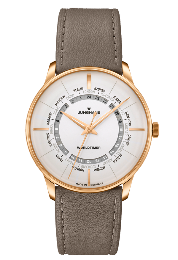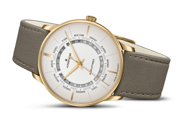Die neue Meister Worldtimer veranschaulicht auf elegante Weise, wie die Welt unaufhörlich in Bewegung ist. Über die Stundenscheibe und die auf dem Zifferblatt vermerkten Städte hat der Träger 24 Zeitzonen im Blick. Während das Zifferblatt veranschaulicht, wie die Zeit rund um den Globus ihren Lauf nimmt, erlaubt ein Glasboden auf der Gehäuserückseite einen Blick auf das veredelte Automatikwerk.