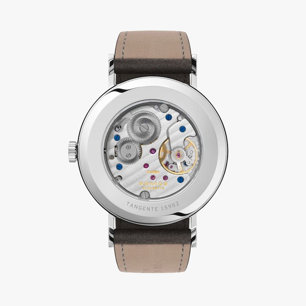 Der Klassiker von NOMOS Glashütte, die Nummer eins: Handaufzugswerk Alpha, von Hand gebaut, läuft und läuft und läuft – hochpräzise, hochgelobt. Einmal aufgezogen, arbeitet es verlässlich bis zu 43 Stunden.