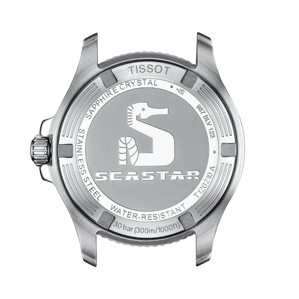 Im kristallklaren Wasser sehen Sie, wie die Sonnenstrahlen durch die Oberfläche brechen. In Ihrem Kopf: entspannte Ruhe. An Ihrem Handgelenk: die Tissot Seastar 1000 36mm, Ihr Tor zur Unterwasserwelt. Sie ist schick, markant und vielseitig. Egal, welche Variante Sie wählen, alle verfügen über ein Swiss Made Quarzwerk, ein 316L-Edelstahlgehäuse mit 36 mm Durchmesser, eine einseitig drehbare Lünette mit Mineralglas-Inlay, eine verschraubte Krone und einen verschraubten Gehäuseboden sowie eine Wasserdichtigkeit bis zu einem Druck von 30 bar (300 m).