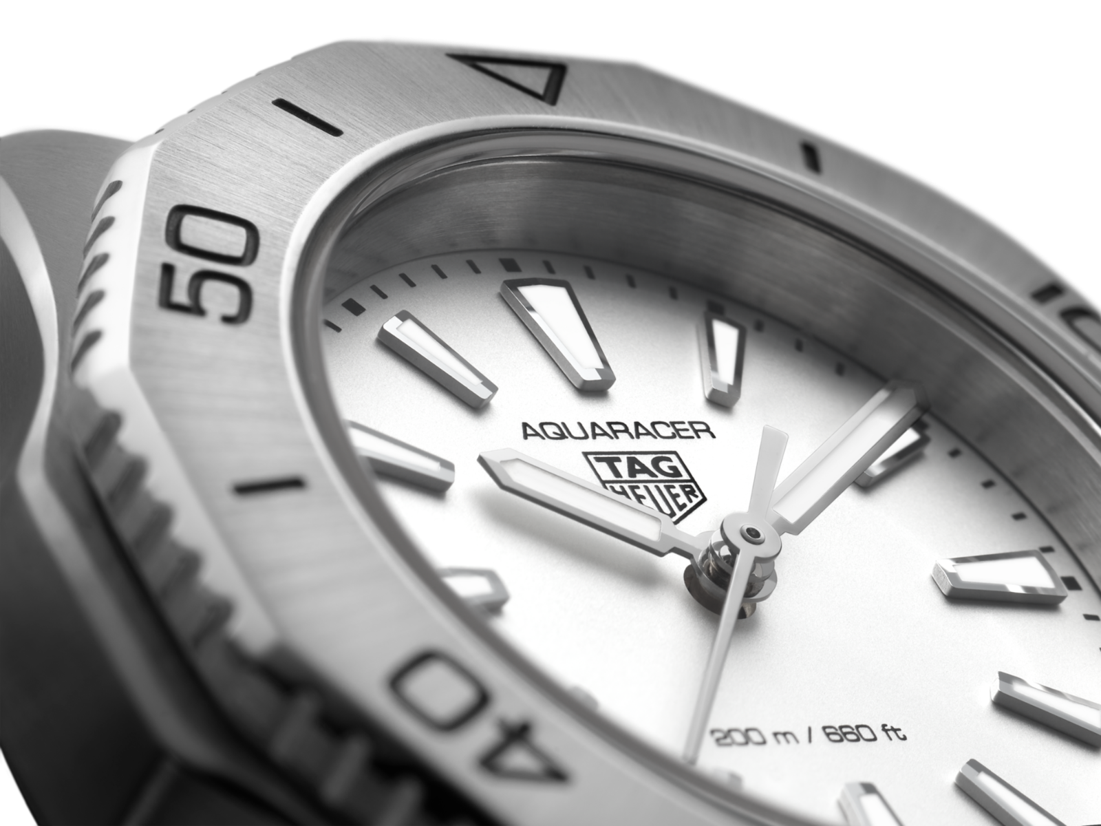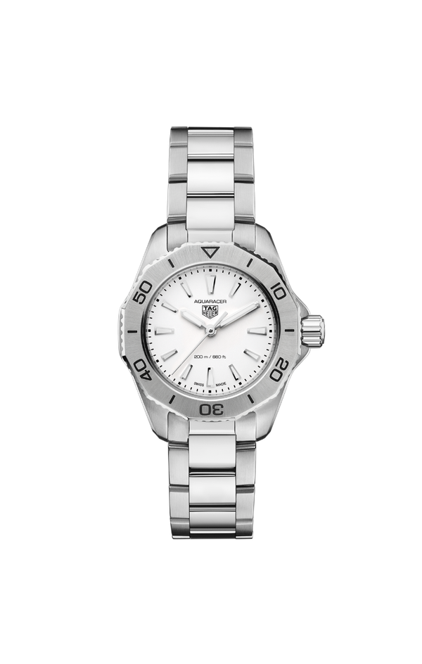 Die TAG Heuer Aquaracer ist für den täglichen Gebrauch konzipiert. Eine echte Funktionsuhr mit vielseitigem Stil, die Sie dabei unterstützt, Ihre persönlichen Grenzen zu überwinden. Dieses 30-mm-Modell besticht durch ein schimmerndes silbernes Zifferblatt und unverwechselbare Kühnheit.