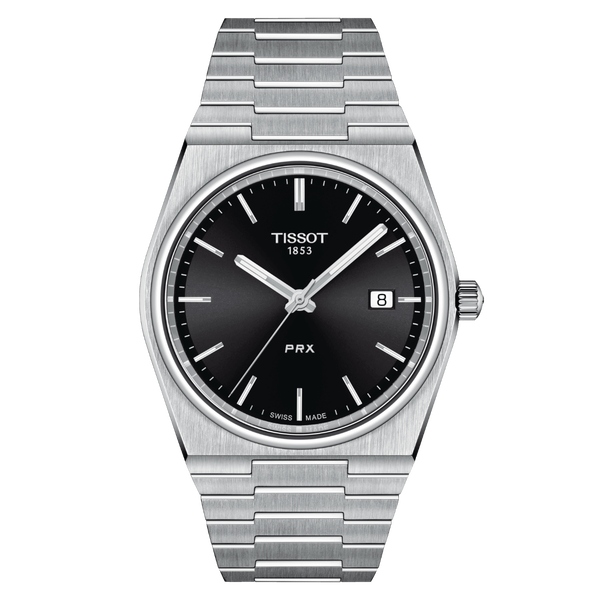 Einige Jahre später ließ Tissot den Namen PRX eintragen. „PR“ steht dabei für „präzise“ und „robust“. Das „X“ steht für die römische Zahl Zehn und für den Druck von 10 Bar, der einer Tiefe von 100 Metern entspricht, bis zu denen die Uhr wasserdicht bleibt.