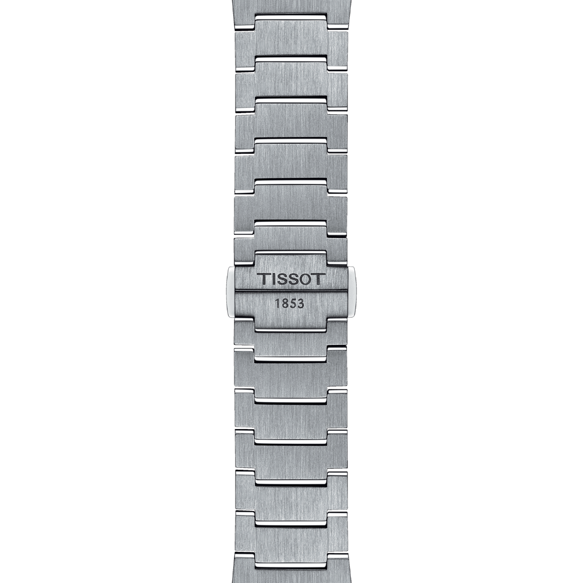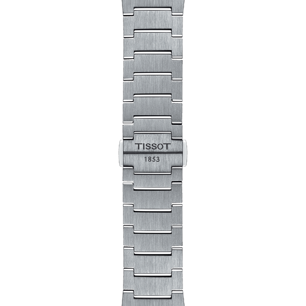 Die Tissot PRX ist mit einem Zifferblatt mit vernickelten Indexen und Zeigern ausgestattet. Die Linien des Gehäuses verlängern sich direkt und ohne Einsatz der traditionellen Hörner in das Armband. Dessen auffälligstes Merkmal ist seine Reihe großer Glieder, die die gesamte Breite beanspruchen. Seine Flexibilität und Geschmeidigkeit machen es zu einem echten Erfolg ergonomischen Designs und vermitteln ein außerordentliches Tragegefühl. Das Satinieren an den Außenseiten ist ebenso sorgfältig ausgeführt wie das Polieren der Innenflächen.