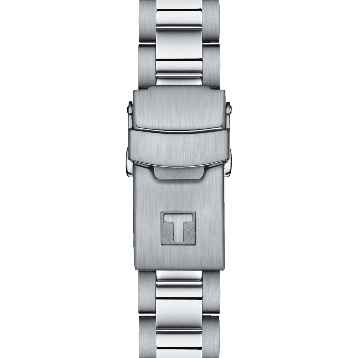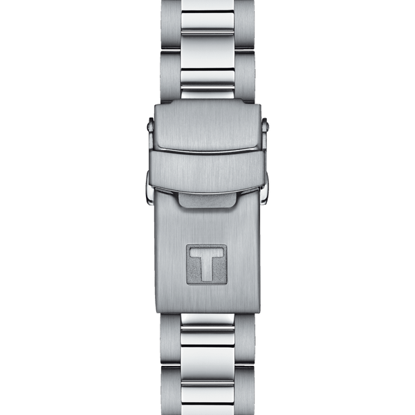 Dieses Tissot Seastar 1000 36 mm Modell verfügt über ein Swiss Made Quarzwerk, ein 316L-Edelstahlgehäuse mit blauer Taucherlünette, verschraubter Krone und verschraubtem Gehäuseboden sowie über kratzfestes, beidseitig entspiegeltes Saphirglas. Auf dem blauen Zifferblatt mit Datumsanzeige bei 6 Uhr finden sich Zeiger und Indizes mit großzügiger, weißer SuperLumiNova-Beschichtung, die im Dunkeln grünlich leuchtet. Das 316L-Edelstahlarmband besitzt eine Taucherverlängerung, eine Faltschließe mit Sicherung und Drückern sowie ein Schnellwechselsystem.
