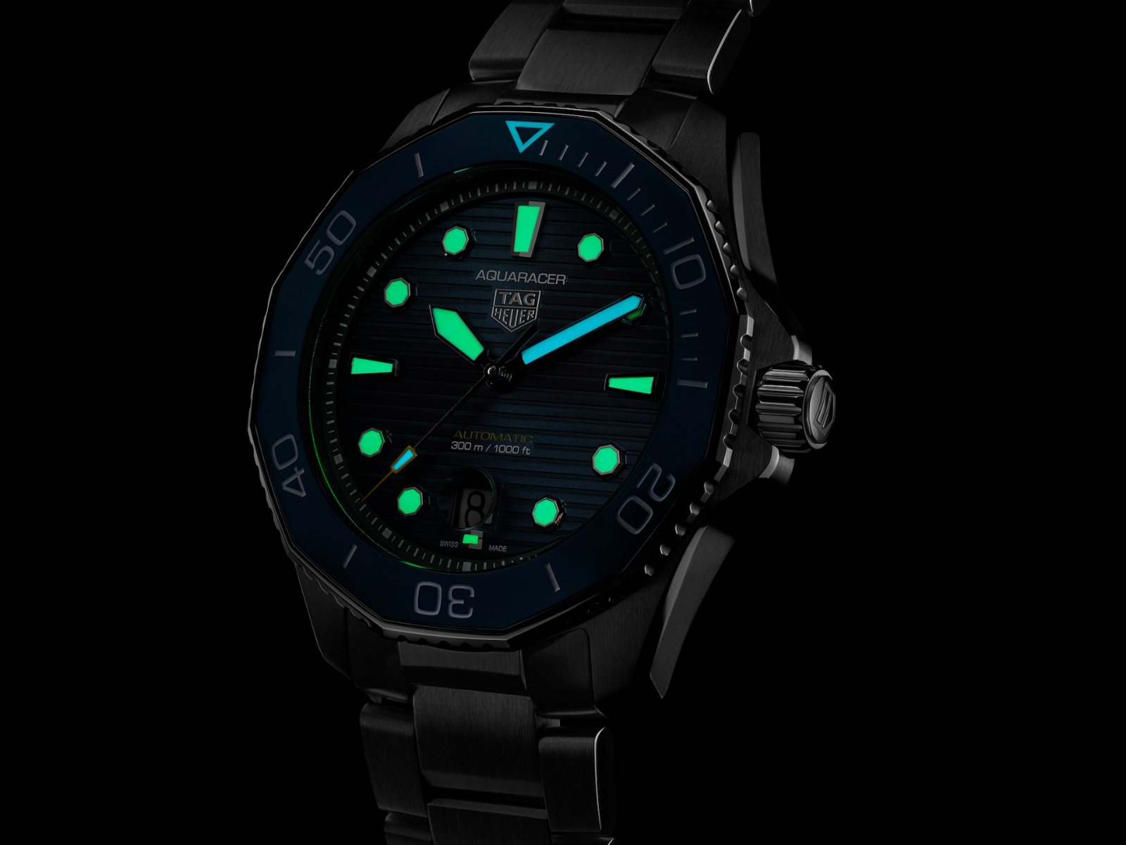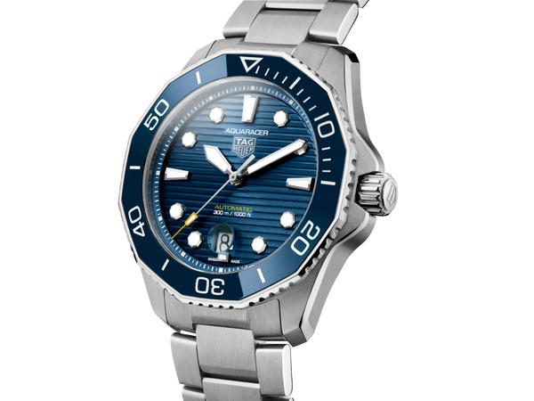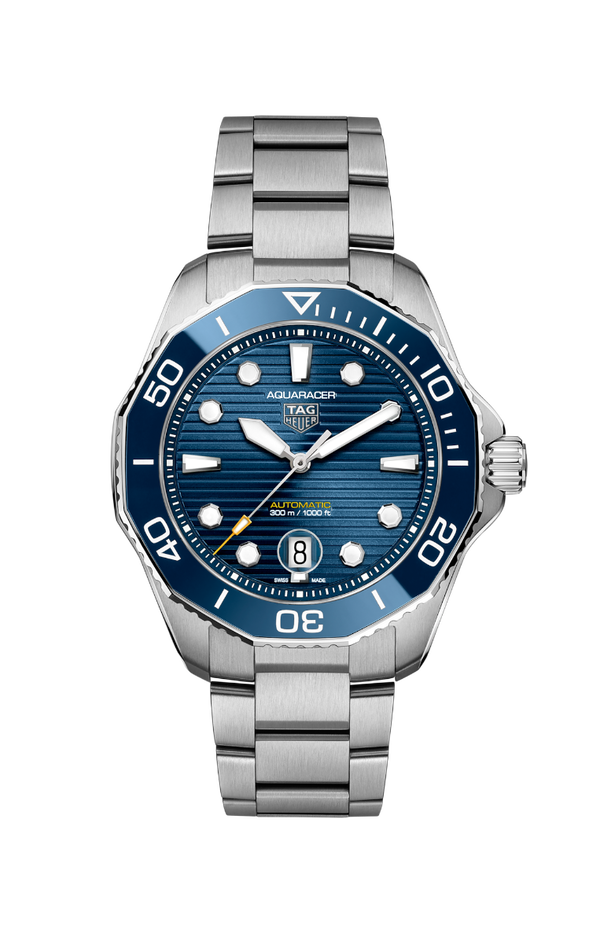 Die neue von dem Automatikwerk Calibre 5 angetriebene TAG Heuer Aquaracer ziert ein gebürstetes Zifferblatt mit blauem Sonnenstrahleneffekt und bietet eine Wasserdichtigkeit von bis zu 300 Metern. Eine echte Taucheruhr, die jeden Tag allen Bedingungen trotzt.