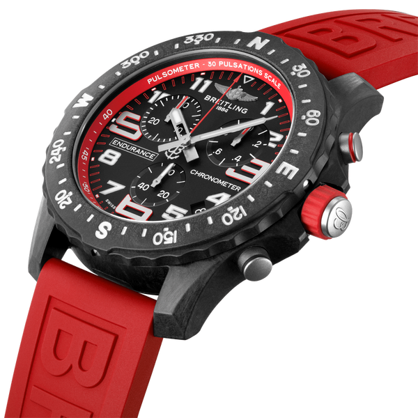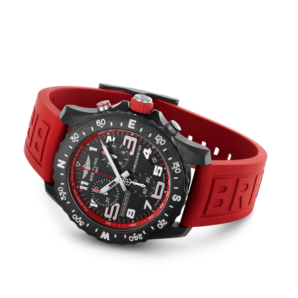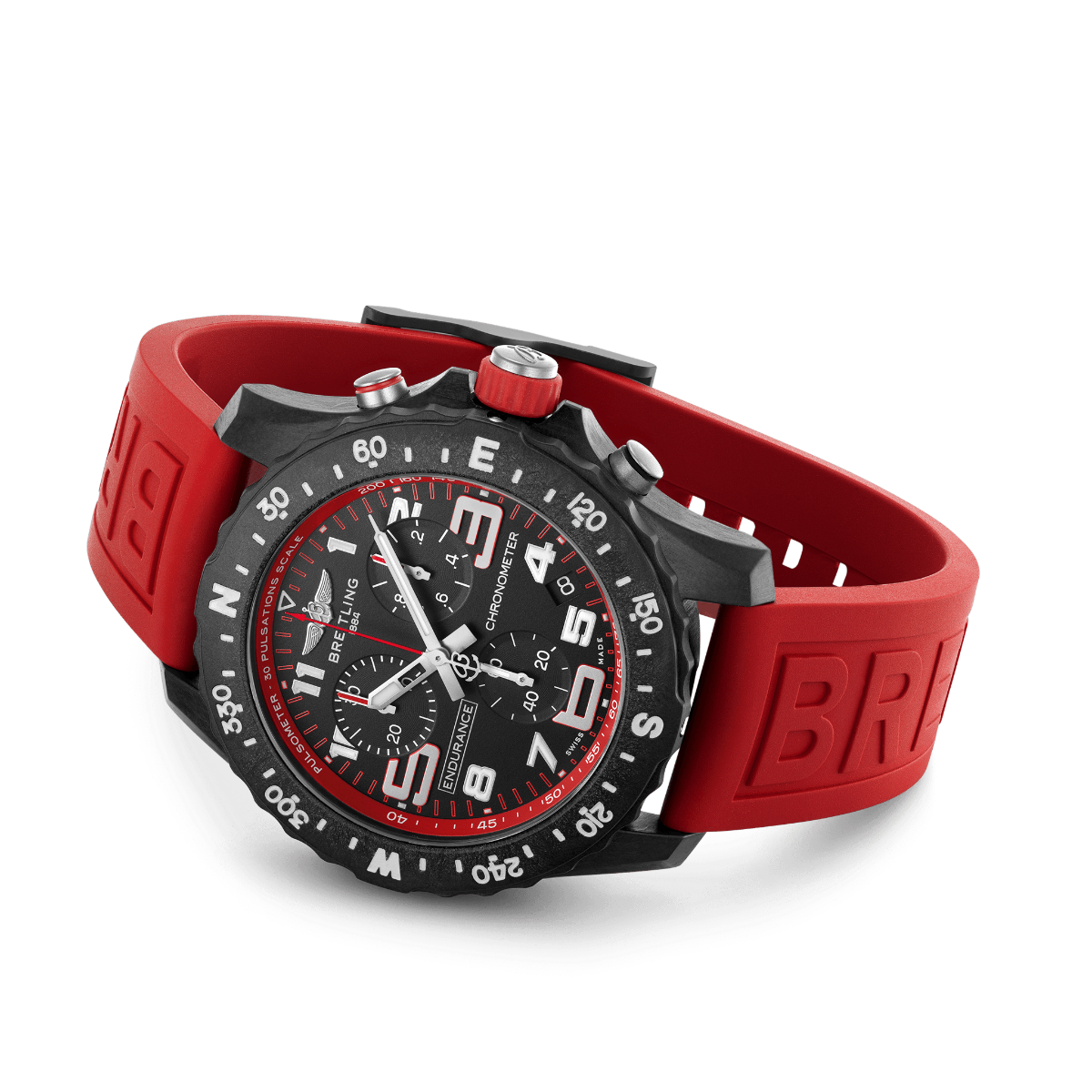 Die Endurance Pro ist sowohl als federleichte Wettkampfuhr wie auch als lässiger Sportchronograph für jeden Tag konzipiert. Sie repräsentiert die perfekte Verschmelzung von höchster Präzision, innovativer Technologie und frischem, farbenfrohem Design. Sie ist die ultimative Athleisure-Uhr. Entworfen für Frauen und Männer, in deren aktivem Leben sich Professionalität und Sportlichkeit die Waage halten, ist die Endurance Pro den Herausforderungen eines anstrengenden Work-outs ebenso gewachsen wie den Ansprüchen an den Alltagschic. Die Endurance Pro verfügt über ein ultraleichtes Gehäuse aus Breitlight®. Dieser widerstandsfähige Werkstoff ist 3,3-mal leichter als Titanium und 5,8-mal leichter als Edelstahl. Das antimagnetische, thermisch stabile und hypoallergene Breitlight® ist hochgradig kratz-, zug- und korrosionsfest. Die haptische Wirkung ist wärmer als die von Metall, und der leichte Textureffekt unterstreicht den Einfallsreichtum des Designs. Breitlight® ist zu 100 % Swiss-made und nur bei Breitling erhältlich. Die Endurance Pro wird in einer Auswahl bunter Zifferblätter und Kautschukarmbändern für die Breitlight® Doppeldornschliesse angeboten und kann auch mit einem der farbenfrohen Breitling NATO-Armbänder aus ECONYL®-Garn von Outerknown kombiniert werden. Herzstück der Endurance Pro ist das Kaliber 82 von Breitling, ein COSC-zertifizierter SuperQuartz™ Chronograph, der ausserordentliche Ganggenauigkeit bietet.